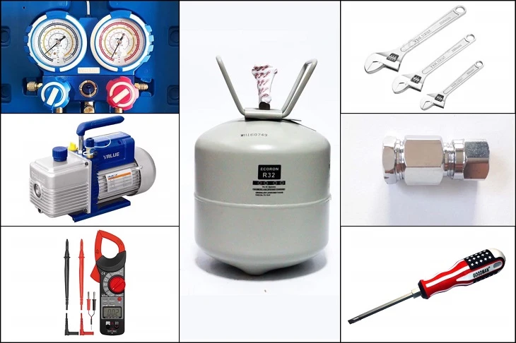 Trước khi tiến hành bơm gas điều hòa , các bạn cần chuẩn bị những dụng cụ chuyên dụng sau:
